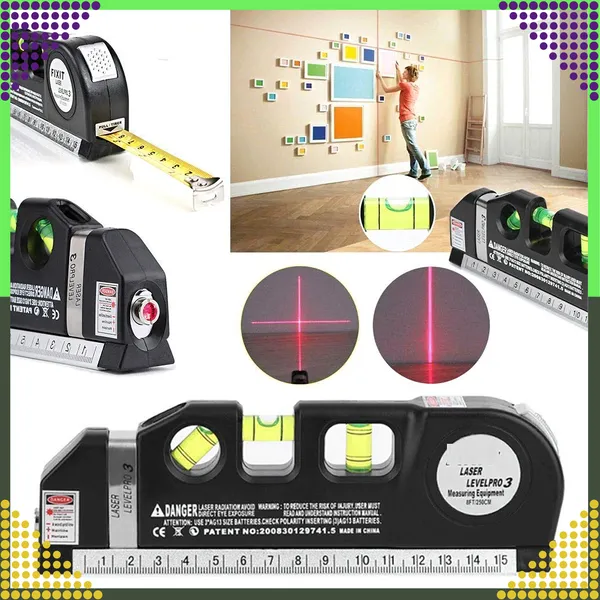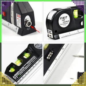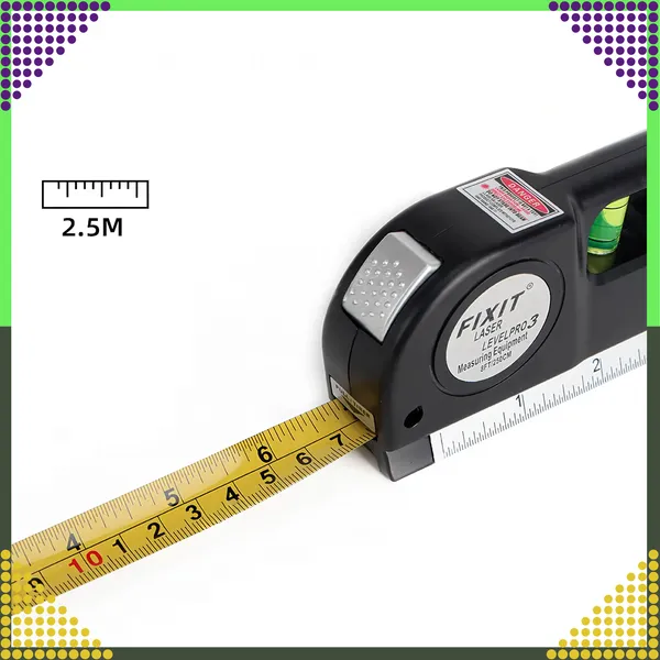 A többfunkciós lézeres vízmérték segítségével pillanatok alatt pontosan kijelölheted a vízszintes, függőleges vagy 45°-os vonalakat, miközben a beépített 2,5 m-es mérőszalag centiméter- és hüvelykbeosztással támogatja a precíz távolságmérést.