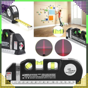 Laseres vízmérték 2,5 m mérőszalaggal, 3 libellával, elemmel