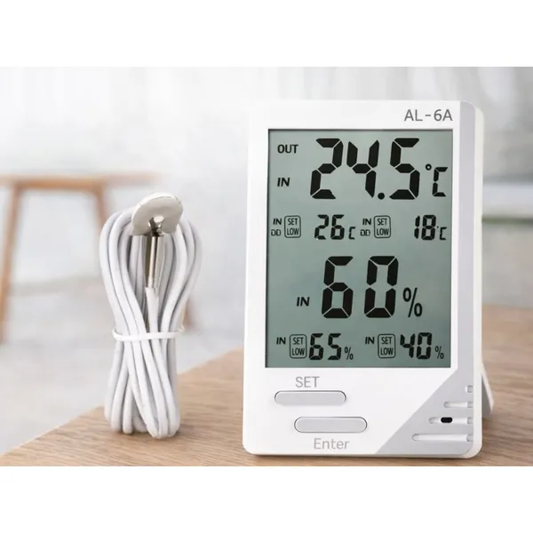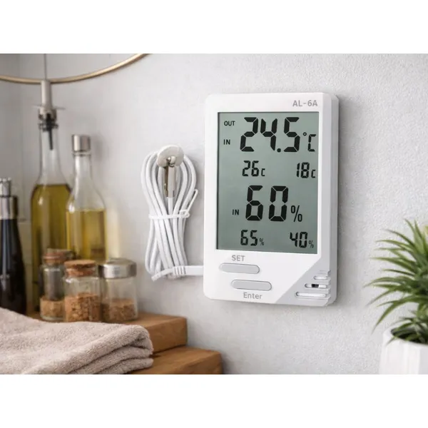 Egyszerre követheti a beltéri és a külső hőmérsékletet a vezetékes szondával, miközben a beépített higrométer segít az ideális páratartalom fenntartásában. A nagy LCD kijelző távolabbról is jól olvasható, a mágneses rögzítés pedig gyors és kényelmes elhelyezést ad a konyhában, pincében vagy üvegházban.