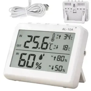Kövesd egyszerre a benti és kinti hőmérsékletet a vezetékes szondának köszönhetően, miközben a beltéri páratartalmat is pontosan figyelheted. A nagy LCD kijelző távolról is jól olvasható, a riasztás funkció pedig időben jelez, ha a beállított tartományon kívülre kerülnek az értékek.