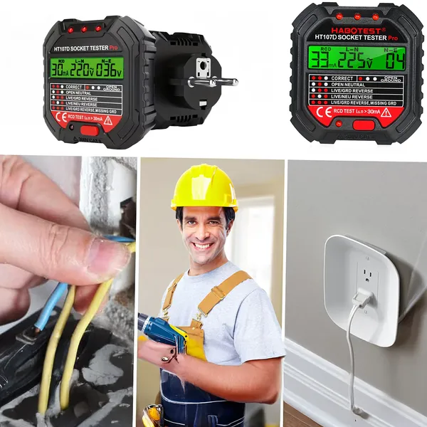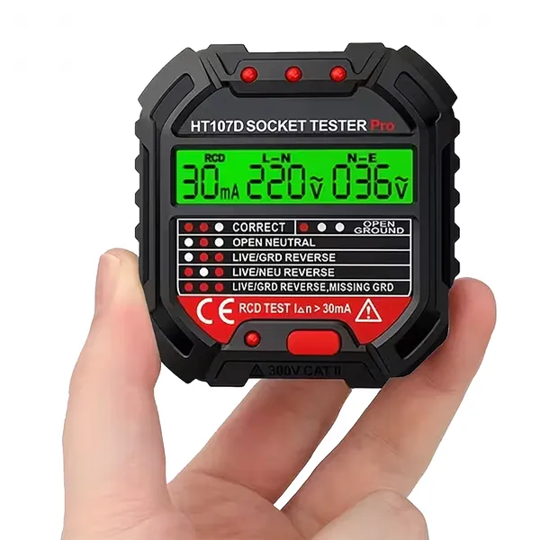 A Habotest HT107D LCD kijelzős hálózati konnektor feszültségteszterrel gyorsan és biztonságosan ellenőrizheted az otthoni, irodai vagy műhelyi dugaljak bekötését. Egyszerűen csatlakoztasd a készüléket a konnektorba, és a háttérvilágított kijelző azonnal jelzi a fázis, a nulla és a védőföld állapotát.