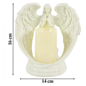 A lágyan pislákoló LED-fény meghitt hangulatot teremt lángveszély nélkül, miközben a finom kidolgozású angyal alak békét és védelmet sugároz bármely otthoni vagy emlékhelyi környezetben. Kompakt méretének köszönhetően könnyedén elfér polcon, ablakpárkányon vagy sírkövön.