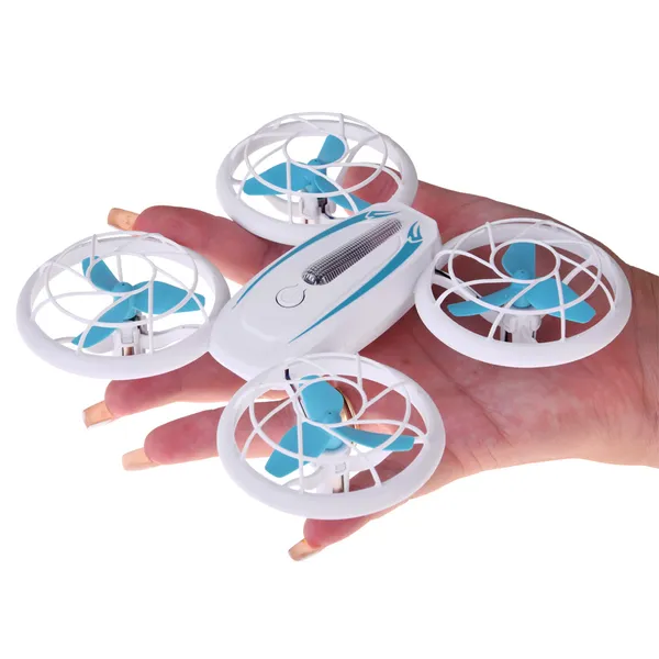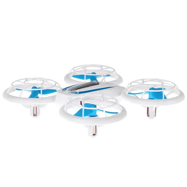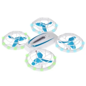 Színes LED-fényekkel szerelt, strapabíró mini drón, amely egyetlen gombnyomásra felszáll, leszáll és 360°-os szaltókat mutat be.