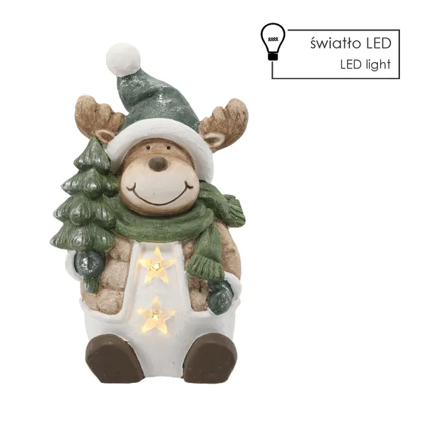 A LED-es csillagokkal díszített rénszarvas meleg fényt és ünnepi hangulatot varázsol bármely helyiségbe, tartós magnézia testének hála pedig évekig élvezheti. A vezeték nélküli, 3 AAA elemes működés szabadságot ad, hogy bárhol elhelyezhesse.