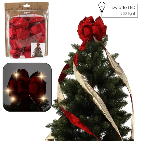 Az elegáns piros masni melegfehér LED-jeivel azonnal ünnepi fókuszpontot képez a fenyő csúcsán, miközben az elemről működő időzítőnek köszönhetően gondtalanul élvezheti a ragyogást. Kompakt, huzalos rögzítése stabil tartást és gyors felhelyezést biztosít.