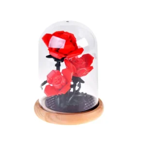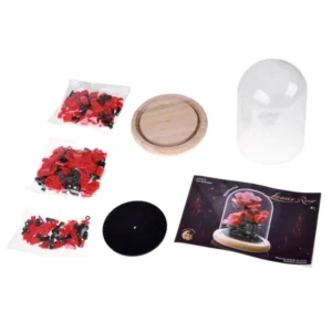 LED világítású rózsa építőkészlet üvegbúrában – 219 darabos dekor szett