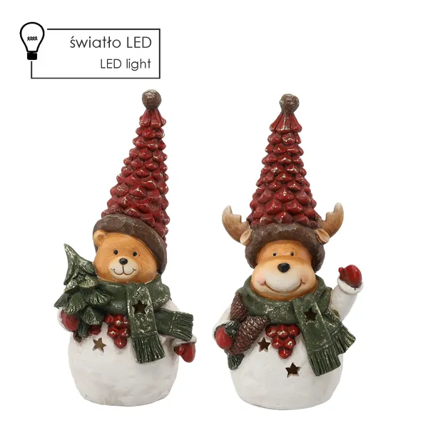 Led világító karácsonyi polirezin medve és rénszarvas figura, 17×14×36 cm, 2 db