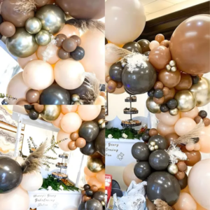 Az arany és barna árnyalatú 130 darabos léggömb girland szett elegáns, látványos dekorációt kínál születésnapra, esküvőre, évfordulóra vagy bármilyen ünnepi rendezvényre. A tartós latex léggömbökből néhány perc alatt magával ragadó fotóháttér készíthető, amely tökéletesen illeszkedik a modern, letisztult partyhangulathoz.