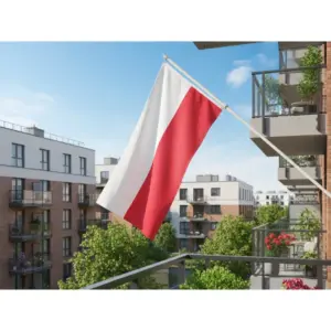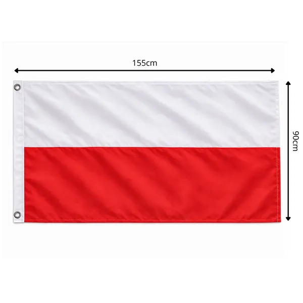 A klasszikus fehér–piros lengyel nemzeti zászló ideális nemzeti ünnepekre, sporteseményekre és hazafias megemlékezésekre. A nagy méretnek köszönhetően messziről is jól látható, és mutatós dekoráció erkélyen, ház előtt, kerítésen vagy beltérben.