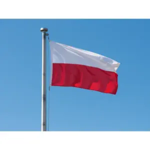 Nagy, jól látható lengyel nemzeti zászló ünnepekre, meccsnapokra és dekorációhoz. Könnyű, tartós poliészterből készül, szépen lobog, és a két rögzítőfüllel gyorsan feltehető zászlórúdra, erkélyre vagy kerítésre.