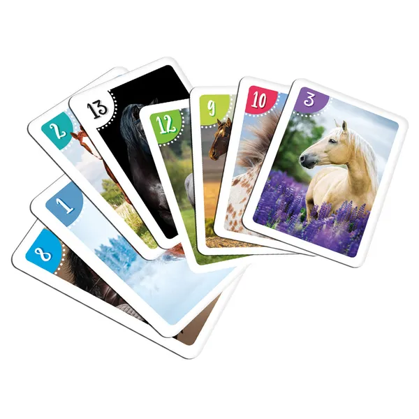 A kártyákon szereplő, valósághű lófotók nemcsak gyönyörködtetnek, hanem fejlesztik a megfigyelőképességet, asszociációs készséget és logikus gondolkodást. A szabályok egyszerűek, így már 4 éves kortól, 2–4 játékos együtt élheti át a játék örömét.