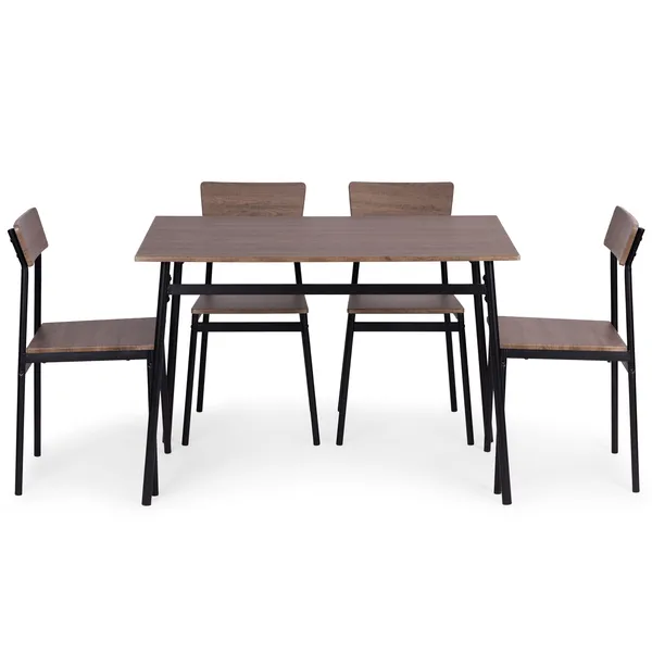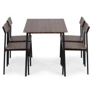 Asztal + 4 szék étkezőszett, amely ideális választás étkezőbe, konyhába vagy loft hangulatú nappaliba. Letisztult, univerzális formavilága könnyen illeszthető modern, indusztriális és minimalista enteriőrökhöz, kompakt méreteinek köszönhetően pedig kisebb lakásokban is kényelmesen elfér.