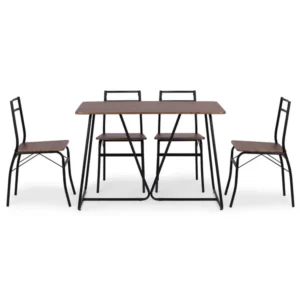 Stílusos, loft jellegű étkezőszett, amely kis helyen is kényelmes étkezőt teremt. A könnyen tisztítható furnéros MDF felületek és a stabil acél váz mindennapi használatra kész, a lábvédők pedig segítenek megóvni a padlót a karcolásoktól.