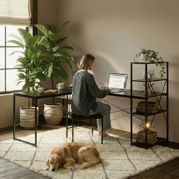 Loft sarok számítógépasztal 4 polccal, fekete – ModernHome
