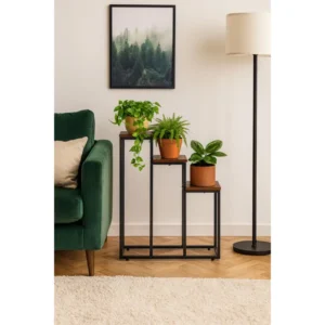 A helytakarékos, 3 szintes loft virágtartó stabil acélváza és fa hatású polcai esztétikusan rendezik el növényeidet, míg a csúszásgátló talpak megóvják a padlót. Ideális választás otthonra vagy irodába, ha stílusos zöld oázist szeretnél kialakítani.