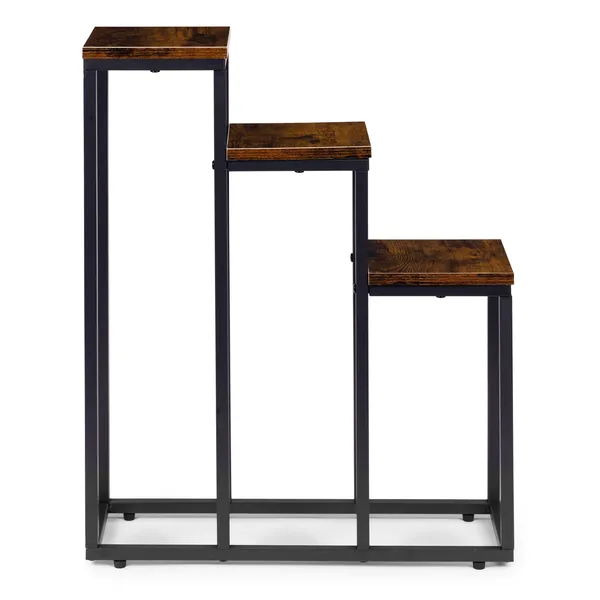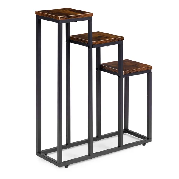 Ez a 3 polcos, álló virágtartó elegáns industriális stílusával azonnal feldobja otthonod, irodád vagy üzleted enteriőrjét. A fekete, porszórt acélváz és a fa hatású bútorlap polcok harmonikus összhangja természetes, mégis modern látványt kínál.