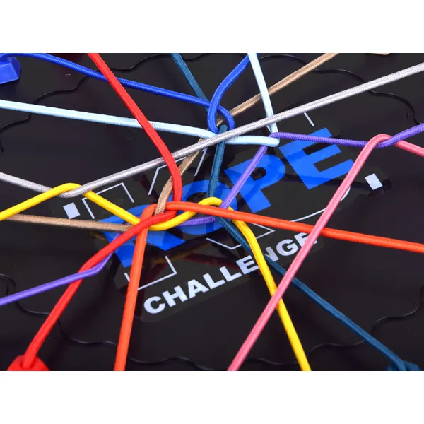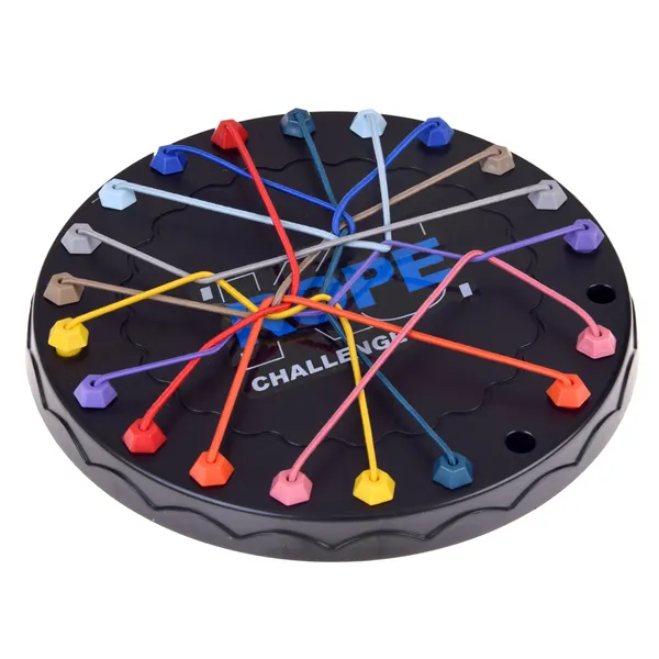 A ROPE logikai kifűző játék izgalmas agytorna és kézügyesség-fejlesztő egyben. A 22 cm átmérőjű, masszív fa táblára rögzíthető rugalmas zsinórokból kell mintákat alkotni, majd a megfelelő sorrendben kibogozni őket. A feladat egyszerűnek tűnik, mégis alapos tervezést, következetességet és türelmet igényel – miközben remek szórakozást nyújt gyerekeknek és felnőtteknek egyaránt.