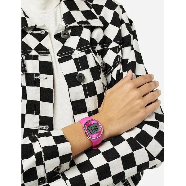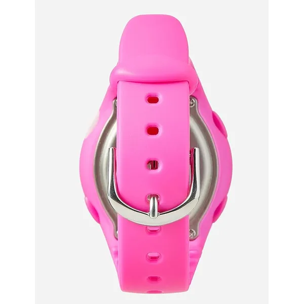 Vízálló (WR100) digitális gyerekóra rózsaszín kivitelben, könnyen leolvasható LCD kijelzővel, hogy a gyerek gyorsan megtanulja és magabiztosan ellenőrizze az időt. Kényelmes, könnyű szíja jól tart játék közben is, a japán kvarc szerkezet pedig pontos, megbízható működést ad a mindennapokra.