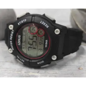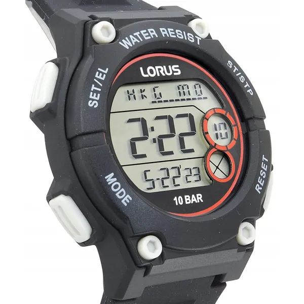 Lorus Sports R2329PX9 unisex digitális karóra, fekete, WR100, dobozzal