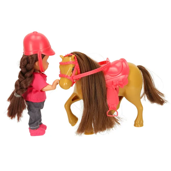 Alkossatok saját lovas történeteket baba–póni párossal, nyerggel és kantárral, hogy a játék mindig új kalandot hozzon. A formázható haj és a fésülhető sörény kreatív elfoglaltságot ad, a könnyű szett pedig utazáshoz is ideális.