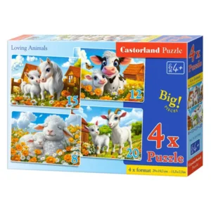 A Loving Animals 4 az 1-ben puzzle szettben a kirakózás öröme négy különböző, kedves állatos képpel találkozik. A csomag 4 db képet tartalmaz, egyenként 29 × 19,7 cm méretben, barátságos, színes világban megjelenített, bájos állatokkal – ideális a legkisebb természet- és mesekedvelőknek.