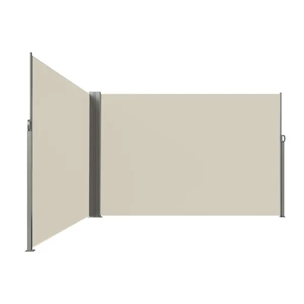 Oldalsó árnyékolóként egy kihúzható „falat” képez, amellyel gyorsan leválaszthatod a privát teret. Különösen praktikus sűrűn beépített környezetben, ahol fontos a diszkréció anélkül, hogy elvenné a fényt vagy túlzsúfolttá tenné az elrendezést.