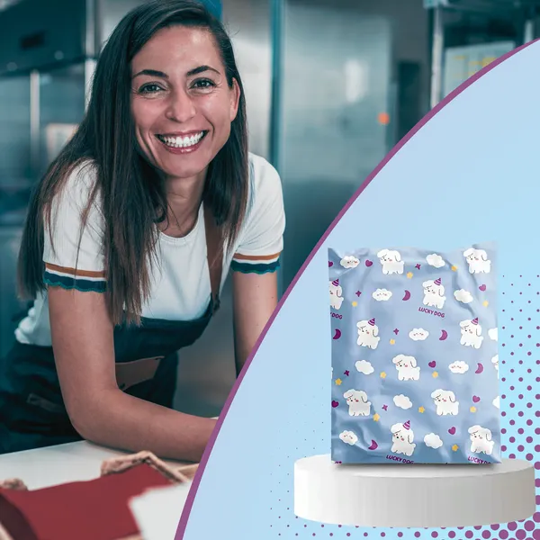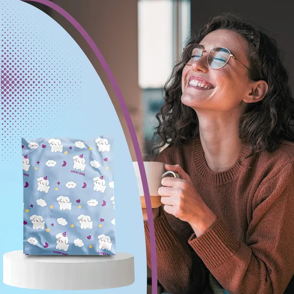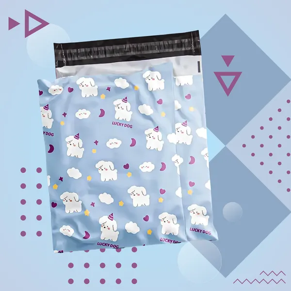 A Lucky Dog futár tasakok megbízható, vízálló megoldást kínálnak online rendeléseid csomagolásához. A 310 × 420 mm-es méret ideális ruházat, könyv vagy kisebb doboz postázásához, a színes, kutyás minta pedig vidám első benyomást kelt a címzettnél.