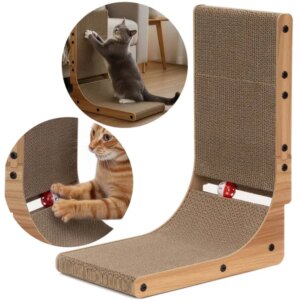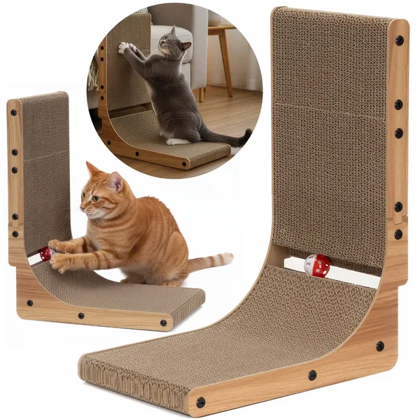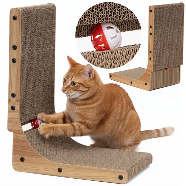 Helytakarékos kaparó, amely a karton felülettel segít levezetni a cicád kaparási ösztönét, miközben a fa keret stabil tartást ad. A csengős labda és a mellékelt macskamenta gyorsan felkelti az érdeklődést, így a macska szívesen használja nap mint nap.