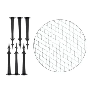 Felhelyezés: Terítsd a hálót lazán a növényzetre vagy húzd ki a támrendszerre, majd az 5–6 cm mélyre szúrható tüskékkel rögzítsd a talajban. Betakarításkor könnyedén visszaszedhető, száraz helyen feltekerve tárolható.
