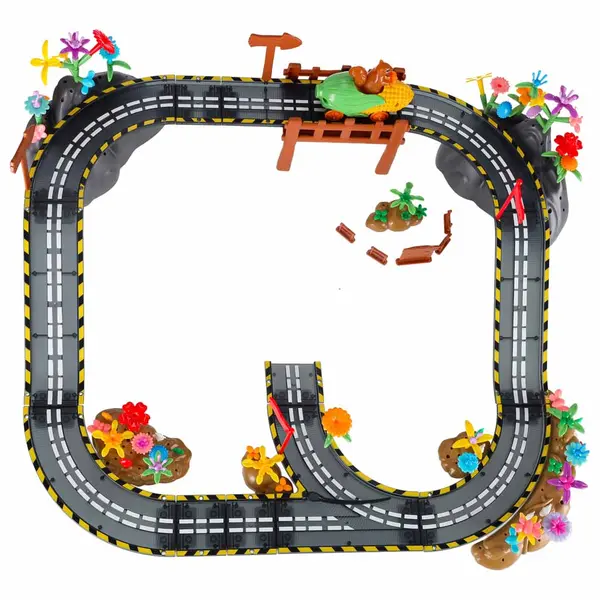 A stabil, jól illeszkedő elemeknek és az alsó megerősítő összekötőknek köszönhetően a konstrukció akkor is masszív marad, ha hidakkal, emelkedőkkel és kanyarokkal bővítitek. A világító jármű látványosabbá teszi a futamokat, a gazdag dekoráció pedig saját „versenyvilág” megépítésére inspirál.