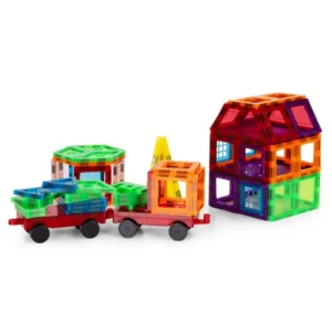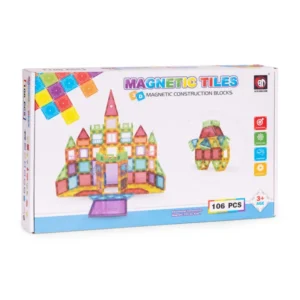 Mágneses építőjáték 106 elemmel – építs, kapcsolj, alkoss korlátok nélkül! A készlet ideális választás 3 éves kor felett, mert játék közben fejleszti a kreativitást, a logikus gondolkodást és a térbeli tájékozódást.