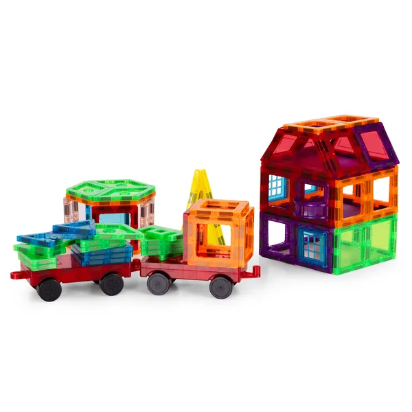 Építs stabil 2D és 3D formákat biztonságos mágneses illesztéssel, akár házat vagy járművet is kerekekkel. A 106 darabos készlet sablonokkal segíti a gyors kezdést, miközben fejleszti a kreativitást, a térlátást és a finommotorikát 3 éves kortól.