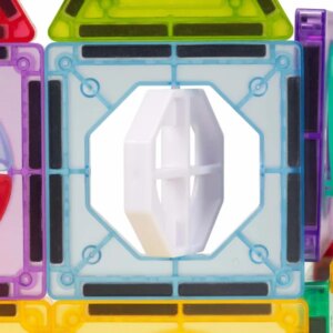 Színes mágneses építőjáték golyópályával – 66 darabos készlet, amelyben a mágneses panelek és a pattintós alagutak/„csúszdák” együtt izgalmas pályákká alakíthatók. A készletben található golyók beépített LED-del rendelkeznek, és mozgásra vagy enyhe rázásra több színben világítanak, így még látványosabb a játék.