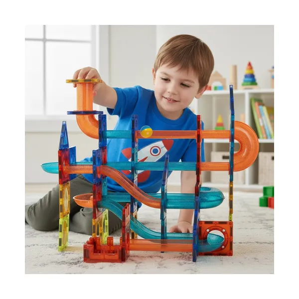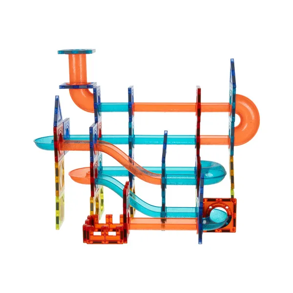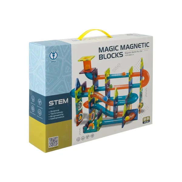 Építs mozgásba lendülő 3D világot ezzel a 96 db-os mágneses építő készlettel golyópályához! A könnyen illeszkedő, erős mágnesekkel ellátott elemekből lapos és térbeli formák, labirintusok és látványos golyófutamok készíthetők, így a játék egyszerre szórakoztató és fejlesztő.