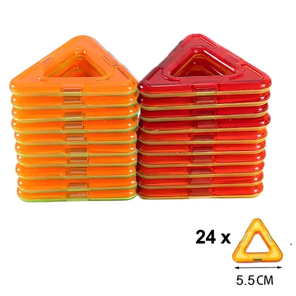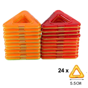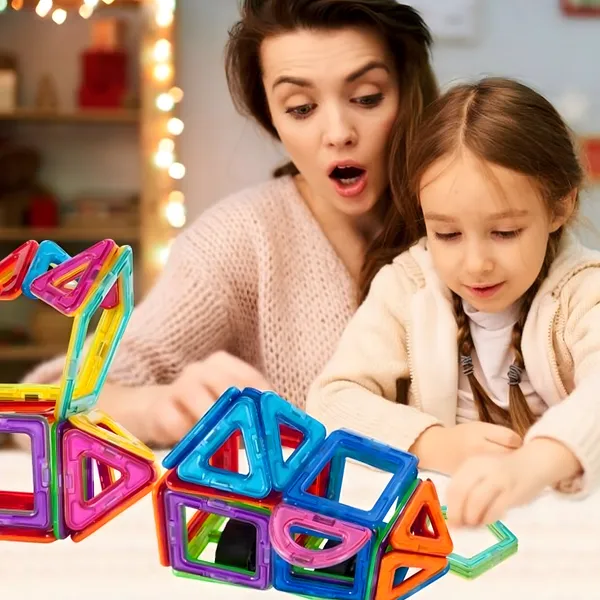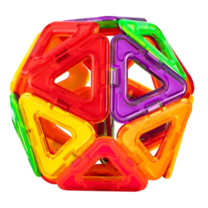 Az erős mágnesekkel összekapcsolható elemekkel stabil sík és 3D formák születnek. Játék közben fejlődik a kreativitás, a térlátás és a finommotorika.