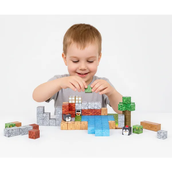 Színes mágneses kockák, amelyek pillanatok alatt összeállnak, így a gyerekek önállóan építhetnek 3D formákat frusztráció nélkül. A mellékelt sablonok gyors indulást adnak, miközben a játék fejleszti a kreativitást, a térlátást és a logikus gondolkodást 3 éves kortól.