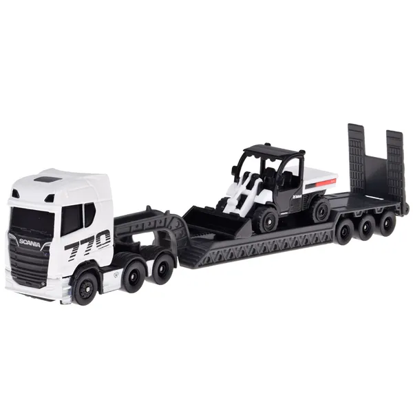 A fém Scania 770S kamion levehető pótkocsiján utazó buldózer elképesztően részletgazdag, mégis strapabíró 1:64 méretarányú modell. Gyűjteménybe és kreatív játékhoz egyaránt tökéletes választás.