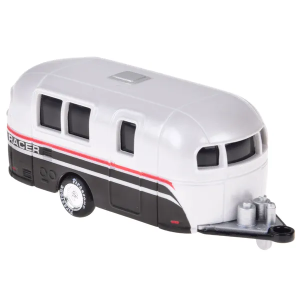A fehér szín elegánsan kiemeli a legendás pick-up vonalait, míg a levehető vonóhorog és a különálló lakókocsi extra játékértéket ad. Állítsd vitrinbe, fotózd diorámában, vagy gurítsd végig a pályán – a masszív kialakítás minden helyzetben megállja a helyét.