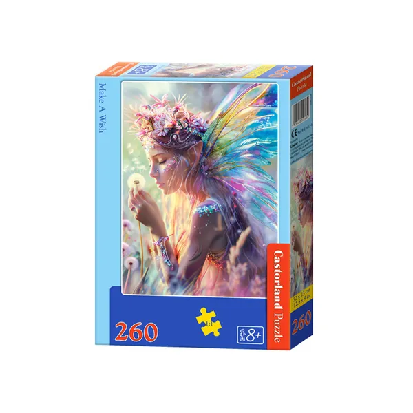 A Make A Wish 260 darabos gyermek puzzle igazi színkavalkád a fiatal kirakórajongóknak. A minőségi nyomat és az esztétikus, élénk színek minden alkalommal kedvet csinálnak az összerakáshoz – a végeredmény pedig egy gyönyörű, 32 × 23 cm-es kép.