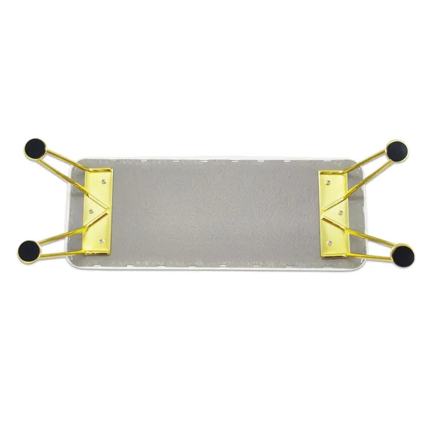 Kényelmesen alátámasztja a kezet manikűr közben, így pontosabban és kevésbé fárasztóan dolgozhatsz. A fehér műbőr felület gyorsan tisztítható, az arany fém lábak pedig stabilan tartják a támaszt a munkalapon szalonban és otthon is.