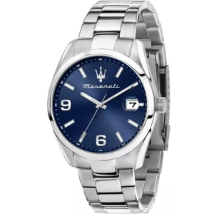 A Maserati Attrazione R8853151007 férfi karóra klasszikus, elegáns megjelenést kínál mindennapi viselethez és alkalmakra is. A tok és a fémcsat teljes egészében rozsdamentes acélból készült, amely tartós és korrózióálló. A fekete számlapon dátumkijelzés található, a számlapot pedig mineral üveg védi. A pontos működésről elemes, megbízható kvarc szerkezet gondoskodik. Az 5 ATM (WR50) vízállóság a mindennapi vízérintkezés (pl. kézmosás, eső) során is magabiztos használatot ad.