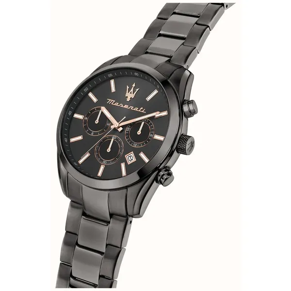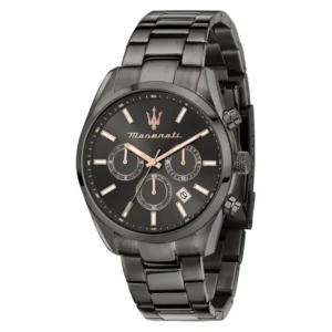 A Maserati Attrazione R8853151001 egy modern, mégis elegáns férfi karóra, amely a sportos megjelenést prémium részletekkel ötvözi. A fekete számlapot rózsaarany tónusú indexek teszik karakteressé, a funkciók pedig a mindennapi használatban is valódi előnyt jelentenek.