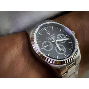 A Maserati Competizione R8853100023 férfi karóra elegáns és sportos választás azoknak, akik kedvelik az autós ihletésű, karakteres kiegészítőket. A fekete számlapot ásványi üveg védi, a kijelzőn pedig praktikus segédszámlapok mutatják a hét napját, a hónap napját és a 24 órás időt.