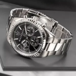 A Maserati Competizione R8853100014 prémium megjelenésű férfi karóra, amely a motorsport ihlette eleganciát a mindennapi megbízhatósággal ötvözi. A fekete számlapon elhelyezett segédszámlapok praktikus információkat adnak, a rozsdamentes acél tok és szíj pedig időtálló, igényes hatást kelt.