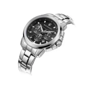 Maserati férfi kvarc karóra kronográffal, fekete számlappal, 44 mm
