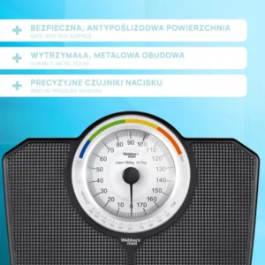 Elem nélküli mechanikus kialakításának köszönhetően azonnal használható, 1 kg-os beosztással pedig gyorsan leolvashatod a súlyodat. A 180 kg-os teherbírás és a BMI-skála révén egyszerre az egész család megbízható egészség-ellenőrző eszköze.
