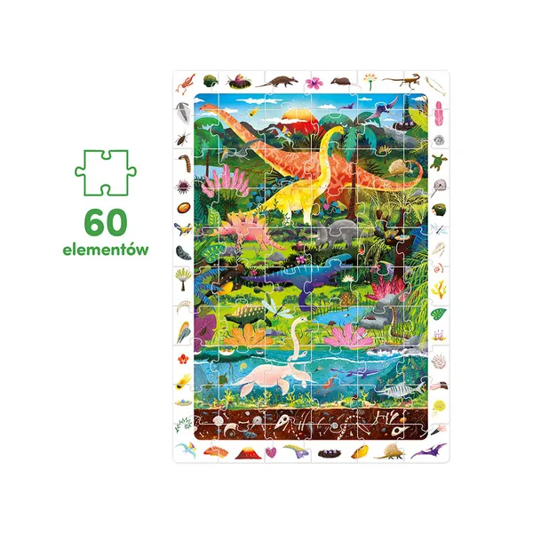 Megfigyelő dinoszaurusz puzzle, 60 db-os, oktató poszterrel 48×68 cm