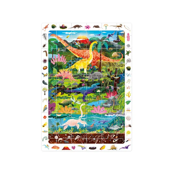 A 60 darabból álló, 48 × 68 cm-es megfigyelő puzzle nemcsak szórakoztató, hanem oktató eszköz is, amely segít a gyermekeknek elmerülni a kréta-kori élővilágban.
