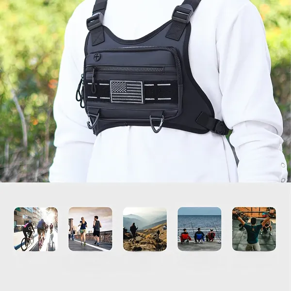 Mellkasi lopásgátló taktikai sporttáska, vízálló 600D nylon futáshoz