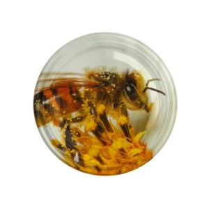Mézesüveg csavaros tető Ø82 mm, 6 borda, méhecske virágon, 660 db